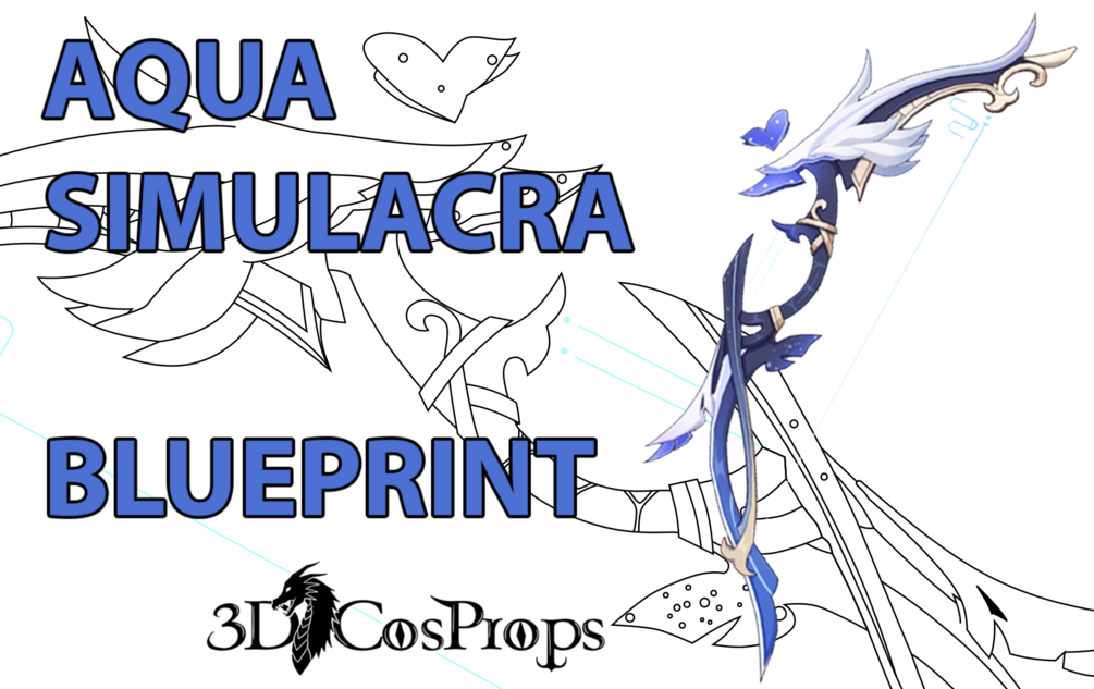• The real-size Blueprint (104 x 43 cm / 41 x 17 inches) to make the bow Aqua Simulacra from the game Genshin Impact. It has 10 pages